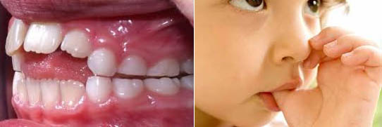4. Parmak Emme: Yeni doğmuş bir bebekte oldukça gelişmiş bir emme mekanizması vardır. Emme içgüdüsü tatmin edilmemiş bir bebek, bu ihtiyacını gidermek için bazı alışkanlıklar edinir. Bu alışkanlığı devam ettiren çocukta, emilen parmağa ve sayısına göre etki alanında bulunan alt ve üst dişlerde yer değiştirmeler ve kapanış bozuklukları görülecektir. Anne sütü ile 9-18 ay beslenen çocuklarda çoğunlukla bu alışkanlık görülmez.